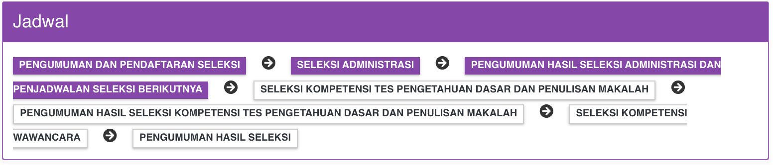 | Pengumuman Hasil Seleksi Kompetensi Tes Pengetahuan Dasar dan Penulisan Makalah | 10 April 2026 (08:00) s.d. 10 April 2026 (23:59) |
