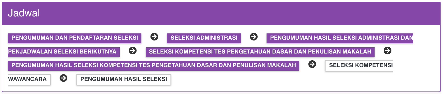 | Pengumuman Hasil Seleksi Kompetensi Tes Pengetahuan Dasar dan Penulisan Makalah | 10 April 2026 (08:00) s.d. 10 April 2026 (23:59) |